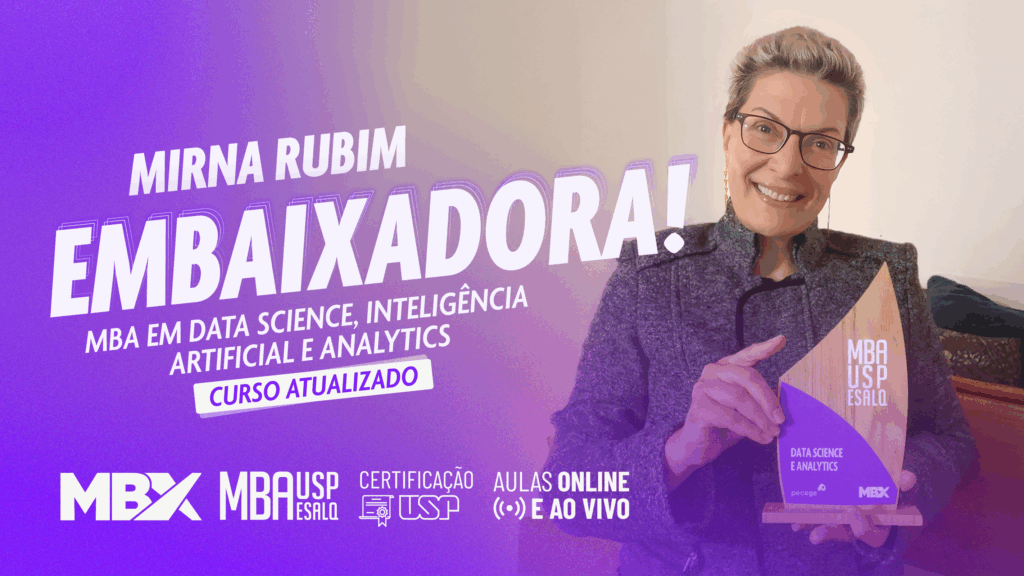 Para profissionais que desejam se tornar mais estratégicos e preparados para o mercado digital, o MBA em Data Science e Analytics USP/Esalq oferece a oportunidade de aplicar conceitos de Analytics, Machine Learning e Inteligência Artificial em projetos reais, transformando a carreira e a gestão de negócios. Assim como Mirna Rubim, ex-aluna e embaixadora do curso, você pode desenvolver habilidades técnicas e humanas para impulsionar resultados concretos.