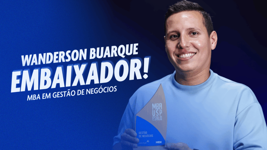 Wanderson Buarque, aluno e embaixador do MBA em Gestão de Negócios USP/Esalq, estava em um momento decisivo de sua carreira quando decidiu investir na pós-graduação em Gestão de Negócios. Apesar de estar sempre em movimento e buscando novas oportunidades, ele sentia que faltava uma qualificação robusta para transformar seu potencial em resultados.